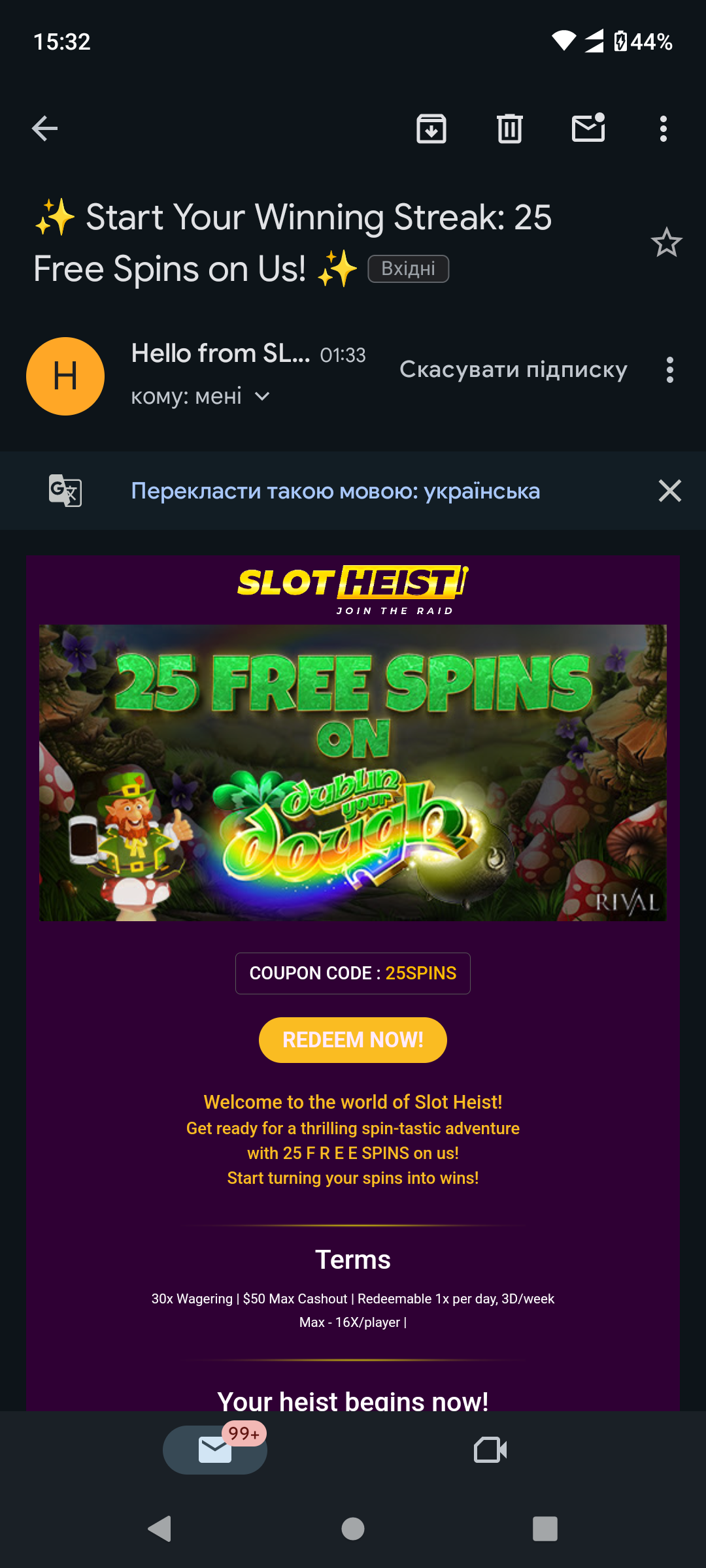 Но прилетел на почту бездеп буквально 30 минут назад от казино биткингз…