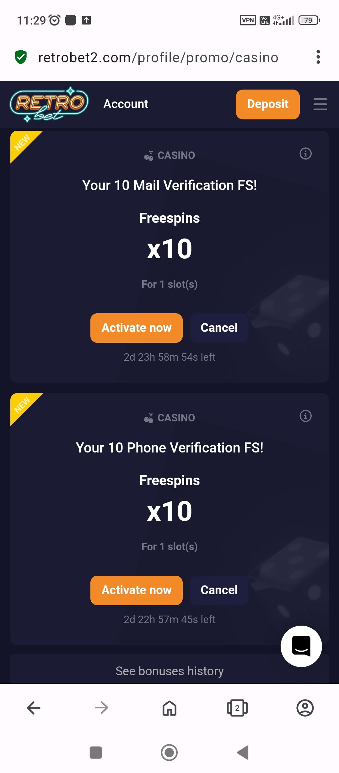 Retrobet после регистрации подтвердить номер телефона и почту, 10+10 Фриспинов