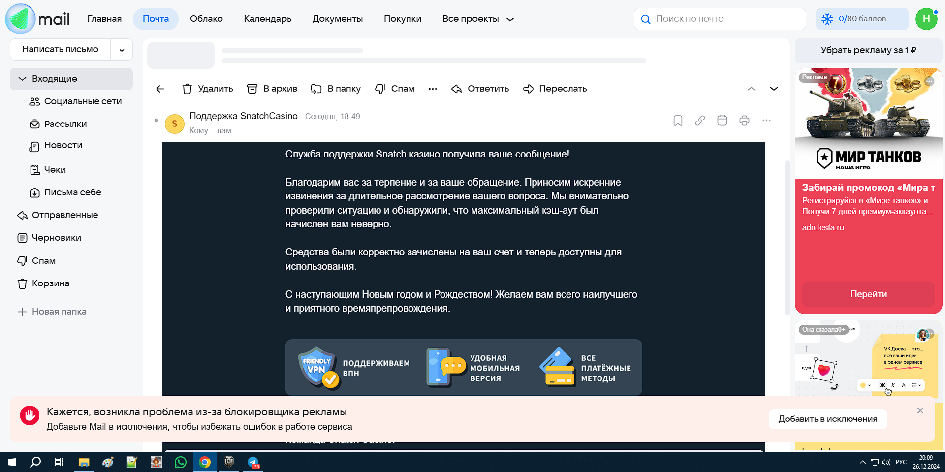 Вечером прислали извинение и вернули 10к на балик, спасибо Вячеславу и команде, не раз уже решали и помогали с выводами! 🤝