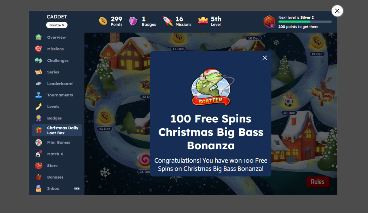 Catcasino, промо SNOWY 50фс если было 10 депов, незнаю за какой период, у меня сработал, ставка 5р ну впрочем ничего нового макс вывод 2500 ну тут тоже без комментариев)