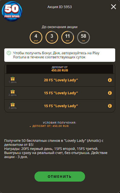 В bons 25 фс по 40 рублей, вроде как 5 дней подряд, если я правильно понял, и в tedbet. За икс джой и раменбет не знаю, еще не смотрел, может быть и там тоже