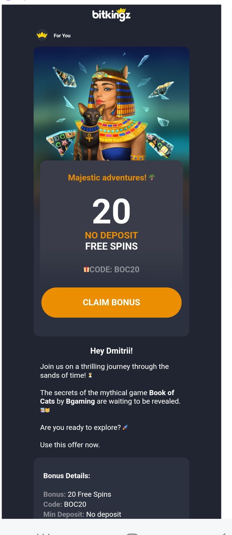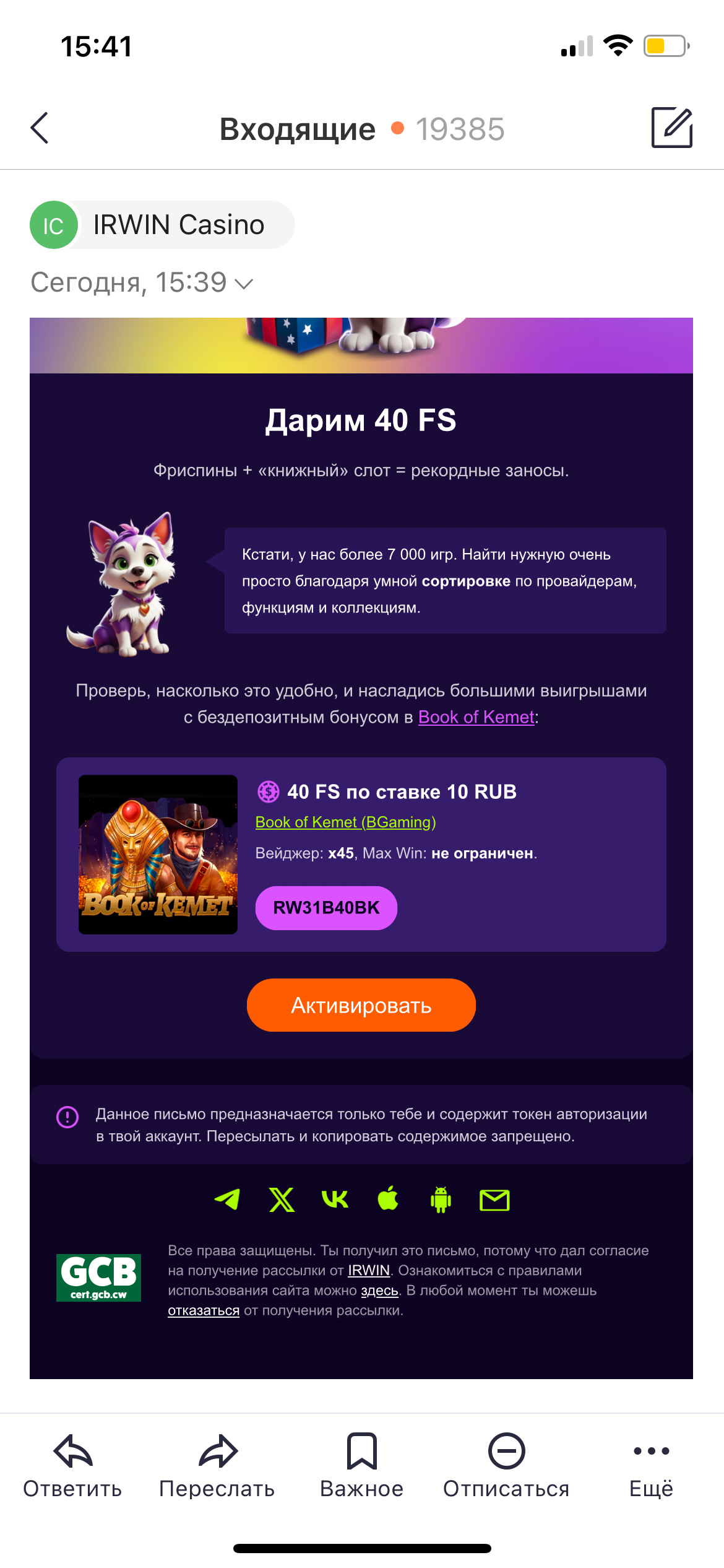 от гама казино пришло письмо с промо бездеп GAMA9ND