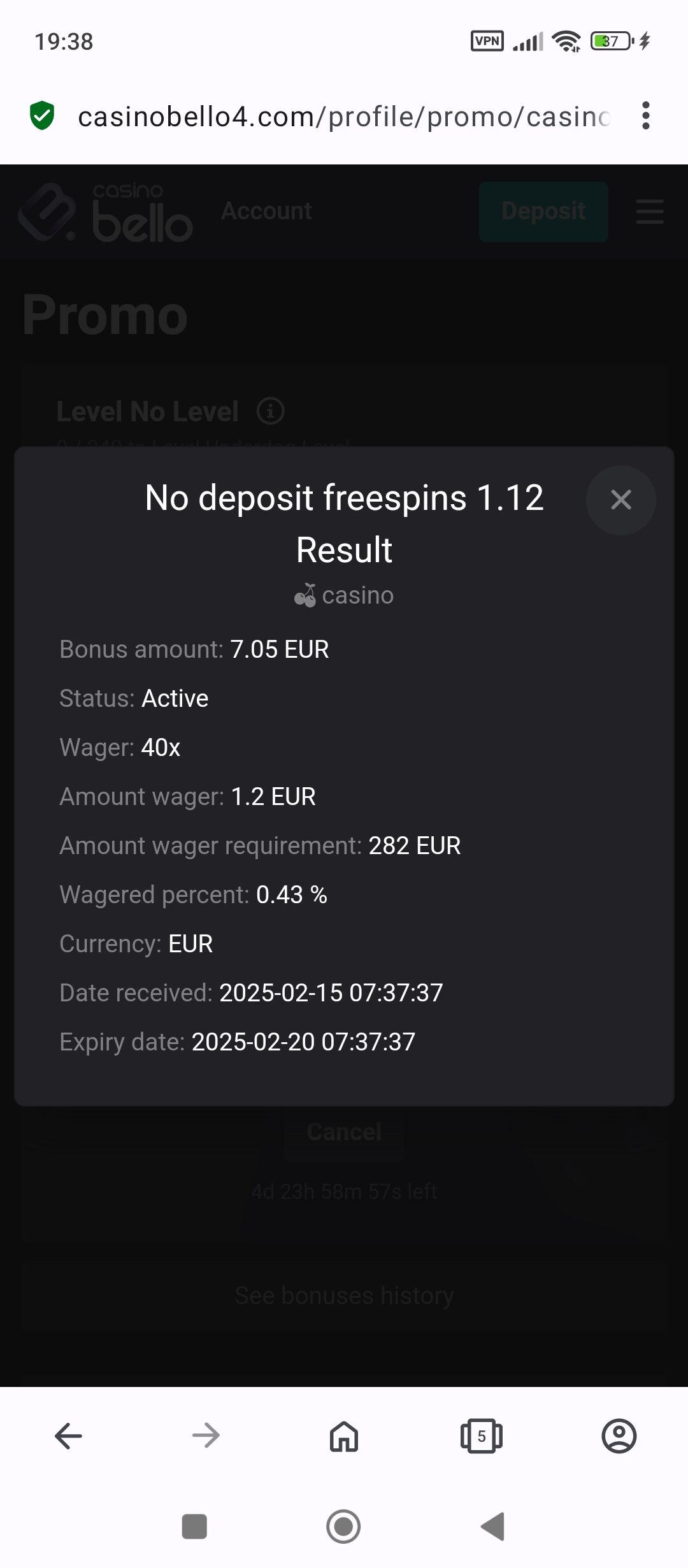 Casinobello после регистрации и подтверждения почты дают 25 фриспинов в 4 слотах на выбор от Bgaming, я регистрировался с Bonusmaniac