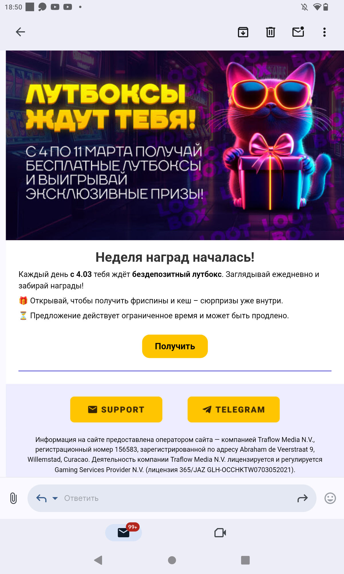 Дадут бездепозитный бонус 555₽ (отыгрыш за бонусные), до конца февраля активна.