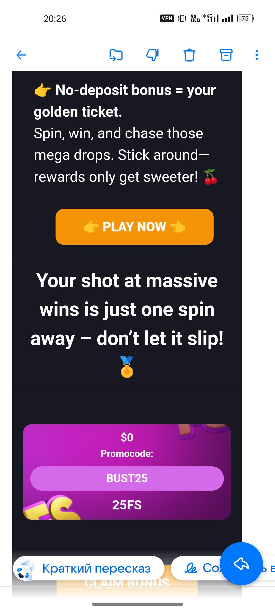 Кто вчера не смог активировать промик в Пинко казино- сегодня он стал снова рабочий. Чекайте 25MAR2627