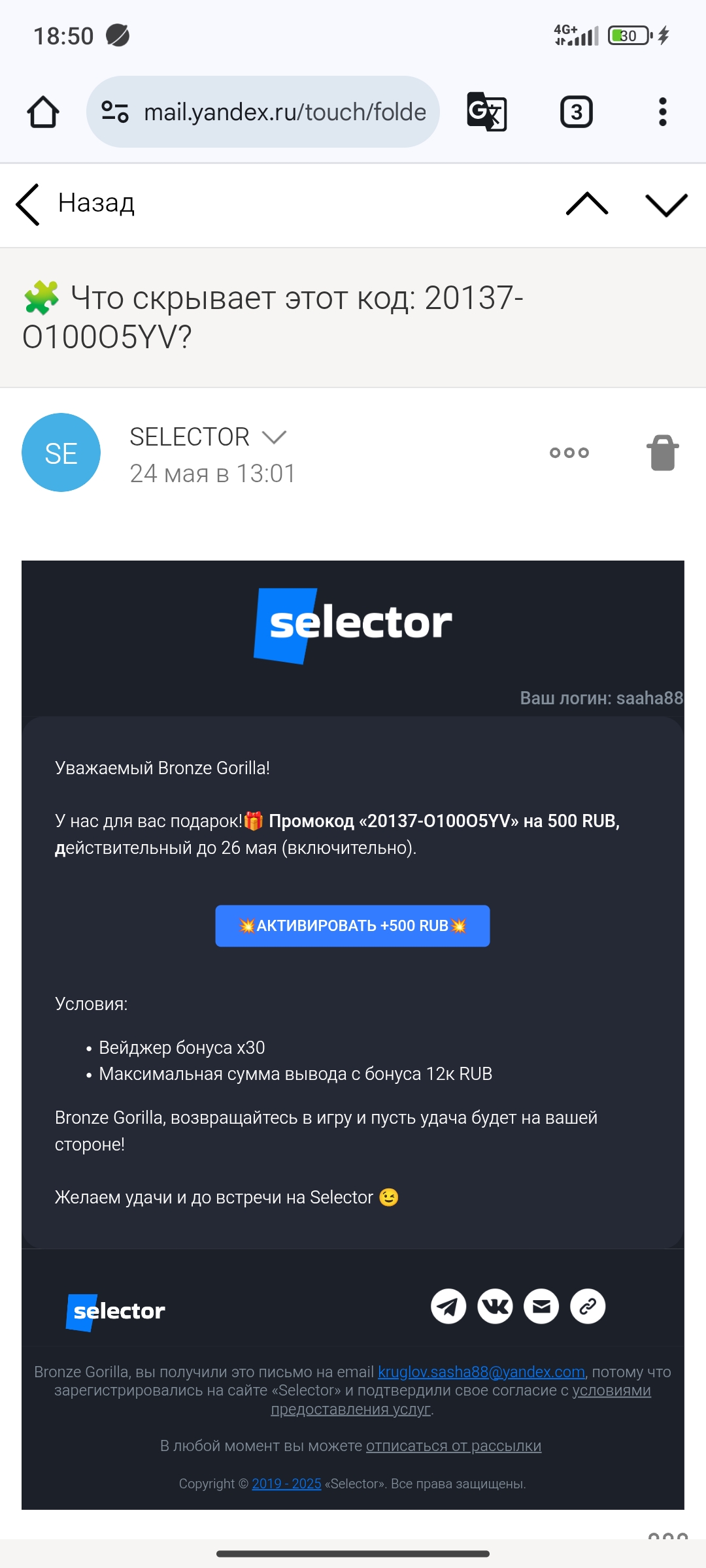 На мыло пришло письмо. 7K дарит 500руб на бонусный балик