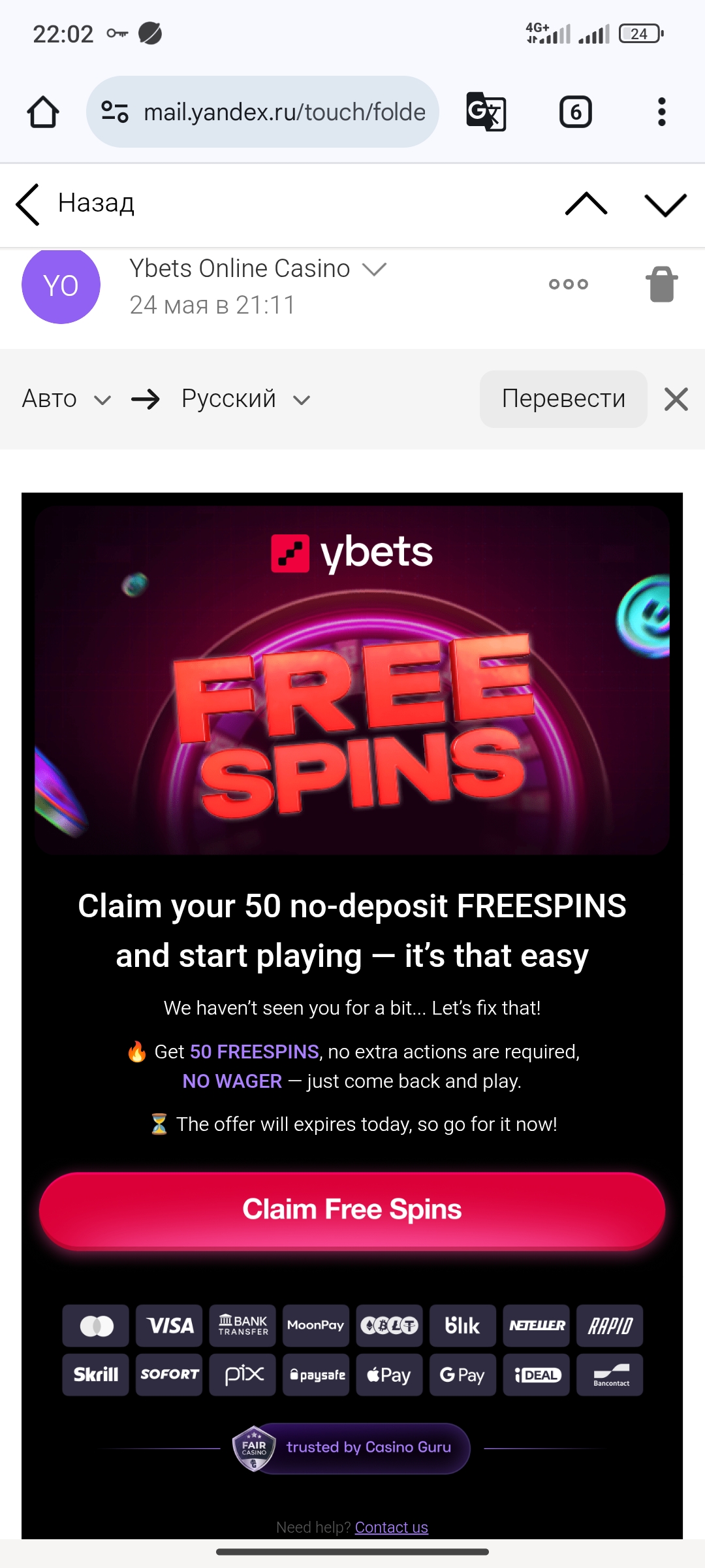 APRILRUSH2 фаирспин проверьте, пришло на почту