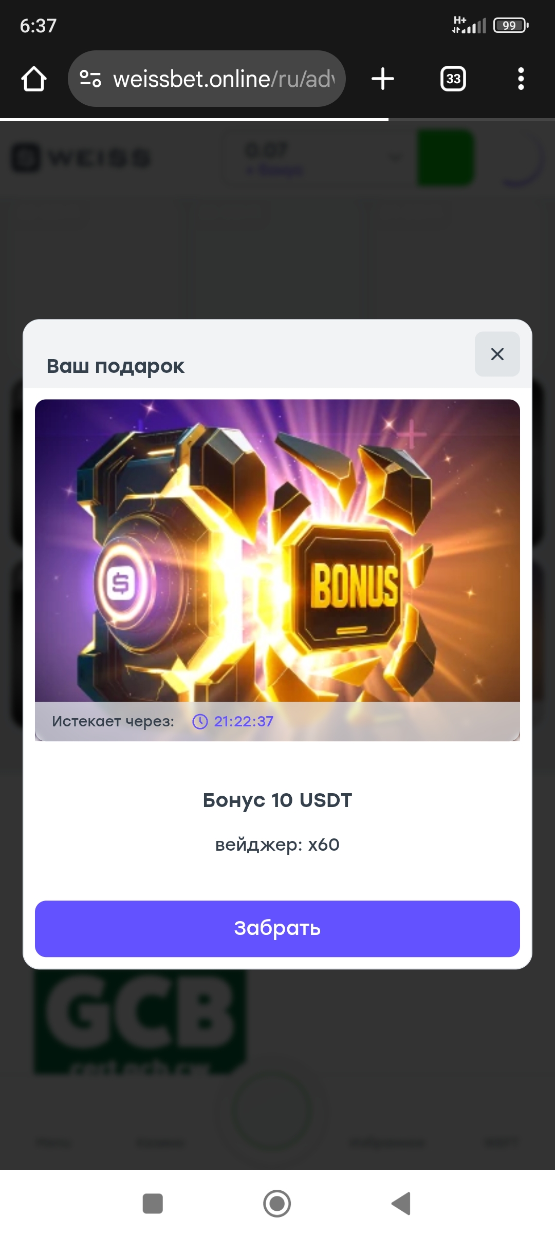 Казино Weiss в календаре 5USDT, вейджер 60, отыгрыш бонусными…