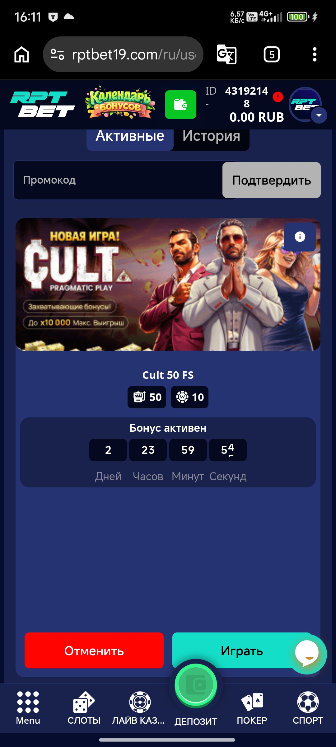 проверяйте акаунты.. плейфортуна… Не знаю, мб индивидуальный… Зашёл на акаунт, у меня бонус до сих пор ещё был активен для использования…