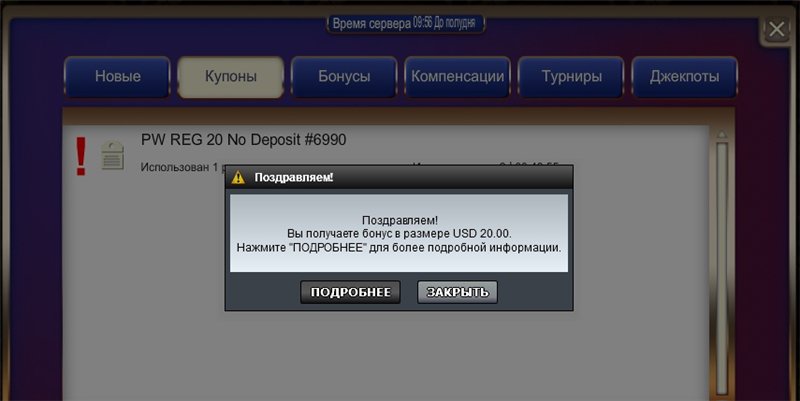 5 спинов в Jurassic Park в покер-клиенте.