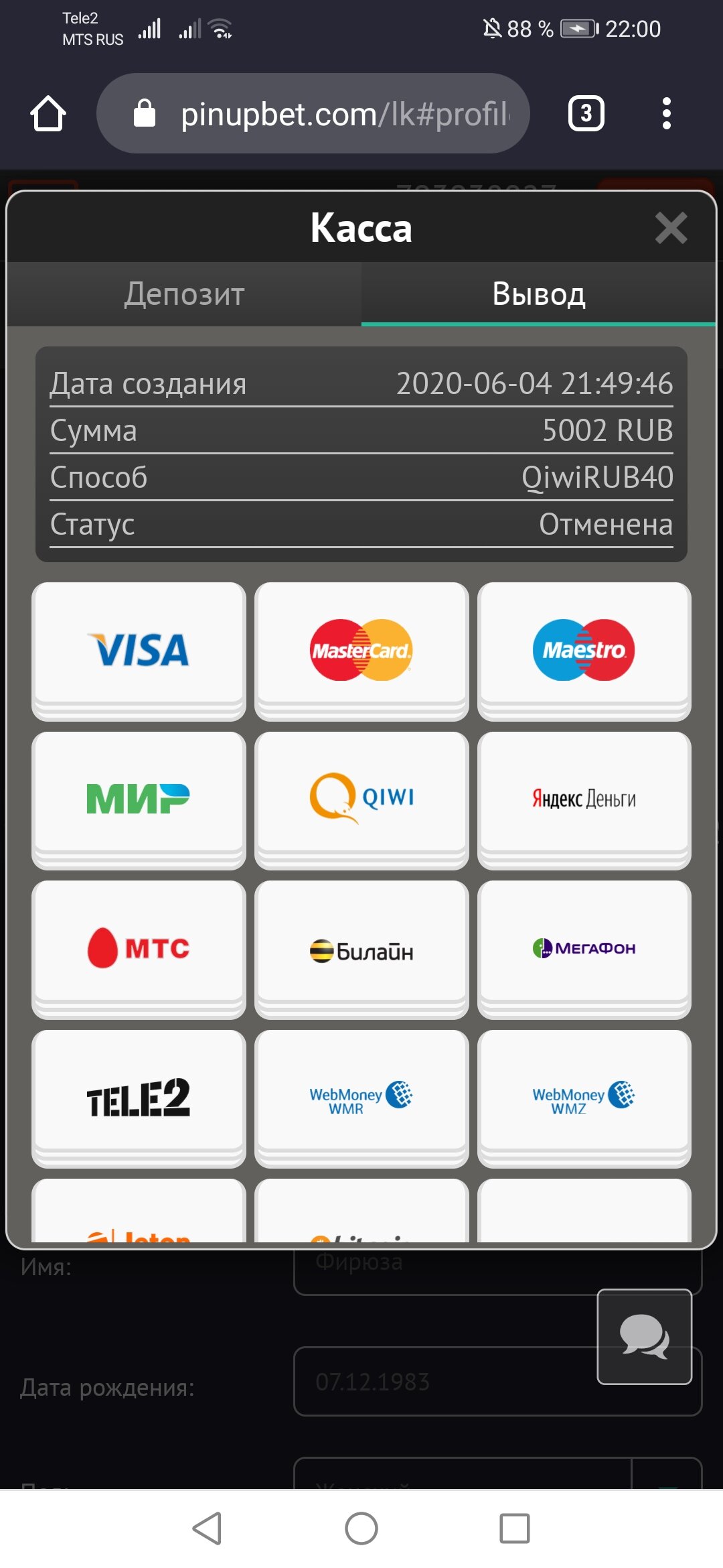 1 раз после проигрыша, намеренно взял и депнул с карты брата минимальную сумму, чтобы не играть у них (так как аккаунт по моей просьбе они не блокировали). Потом решил,что попытаюсь отыграться немного и сразу же написал в чат поддержки их оператору об этом инциденте с картой ,он ответил,что вообще никаких проблем не будет и удалил карту из системы (скрины переписки прилаются).