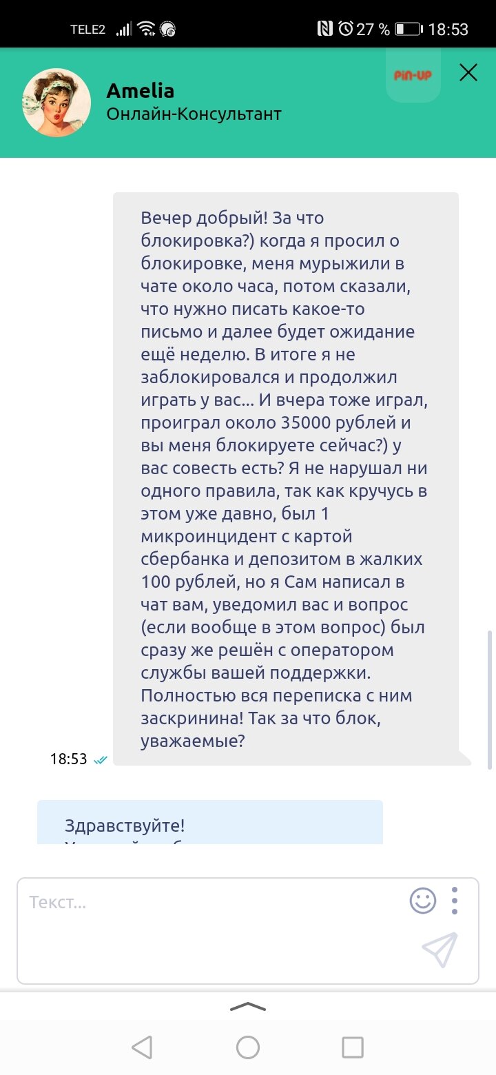 Крик души! 4.06.2020 сделала депозит в Pin up и поставила на вывод 5002р. Хочу сразу заметить, что аккаунт в Pin up верифицирован и выводила всегда без проблем, единственное, в последние полгода не играла в данном казино. В поддержке мне ответили, что вывод невозможен, так как мне нужно пройти дополнительную верификацию. Информацию о дополнительной верификации я смогу получить только по почте завтра. На следующий день мне прислали что необходимо отправить на почту селфи с паспортом и открытым сайтом Pin up, что я и сделала. Далее, через три дня, мне прислали, что необходимо отправить квитанцию жкх и подробно написать устройство, модель, операционную систему, откуда заходила в Pin up, также все айпи адреса. Я в ответном письме возмутилась, почему нельзя было весь пакет документов необходимых для дополнительной верификации сразу отправить. Молчат. Поддержка тоже молчит и не консультируют по поводу дополнительной верификации, ссылаясь что всё общение ведётся по почте! Но по почте не отвечают на вопросы. Ещё через шесть дней они мне прислали что нужно отправить договор на телефон указанный в профиле. Ещё через три дня мне прислали новый запрос, попросив квитанцию или историю пополнений в данное казино.