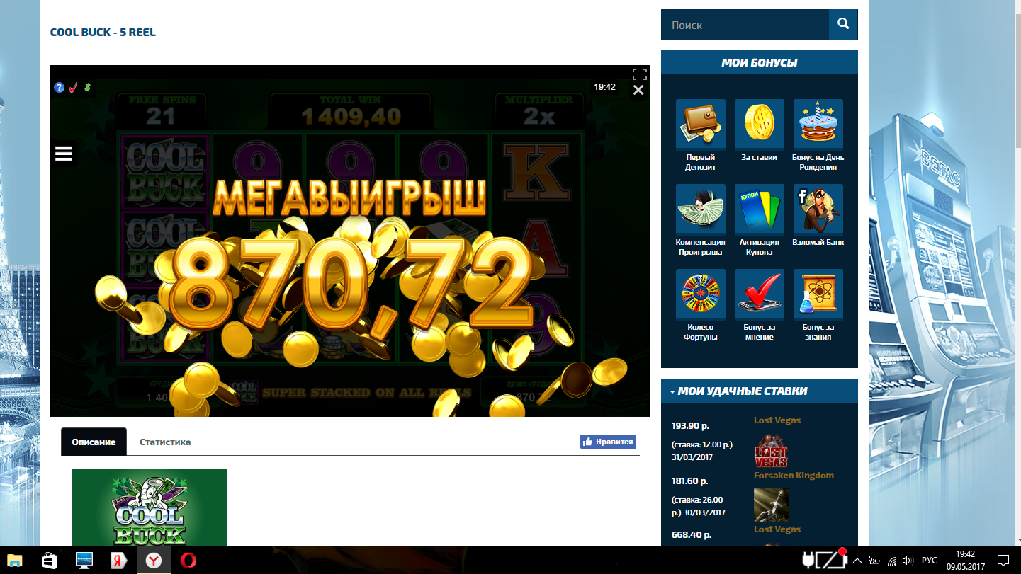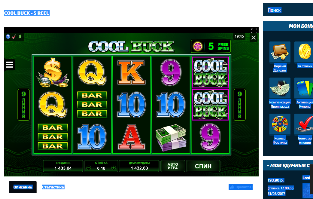 не помну как автомат называется 9 линей играл по 1 р на линию дало в бонусе ряд 1250×5 я был в шоке