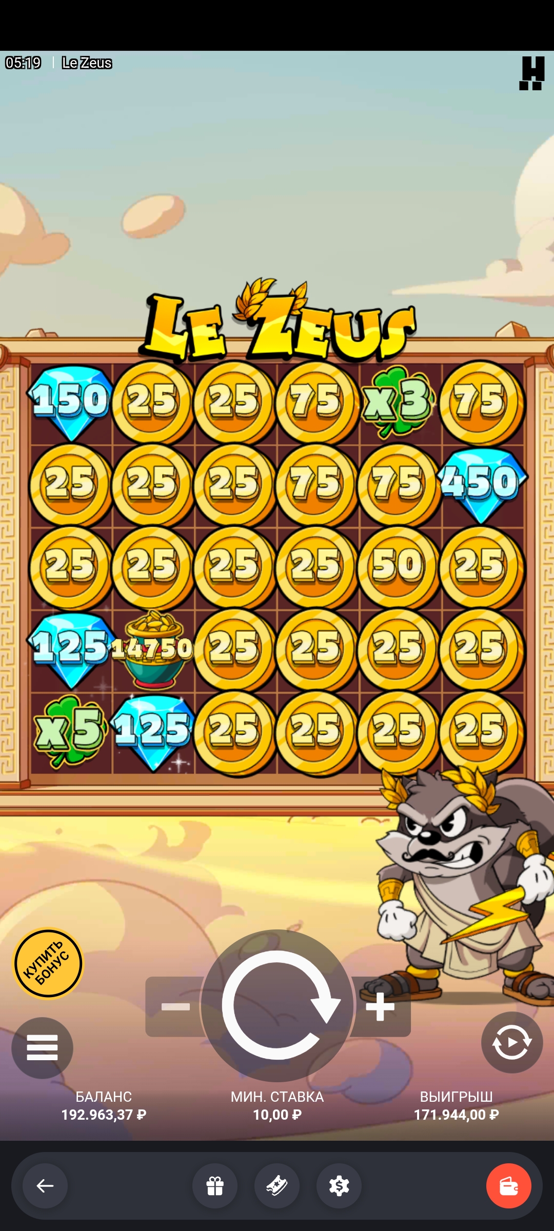 Было в казино Hype, сетки криптобосс. Активировал промокод на 50 фриспинов в мегавейс собаках что ли, дали в районе 100р, отыгрыш х45, максвин 2к₽. Словил по 4р сходу в Slotomoji х1000, отыграл бонус. Пошел спинить слот Rotten от хаксава, выбил топовый бонус по 10р, и вот, чудо, он дает х9000. По сей день это как самый большой мой выигрыш, так и икс от ставки:)