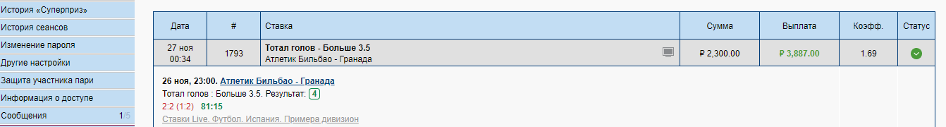 отчетик по ставке бильбао — гранада :