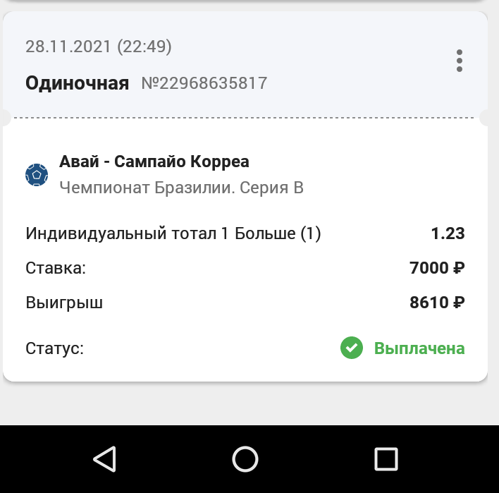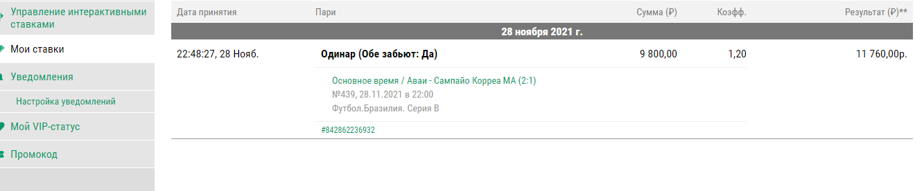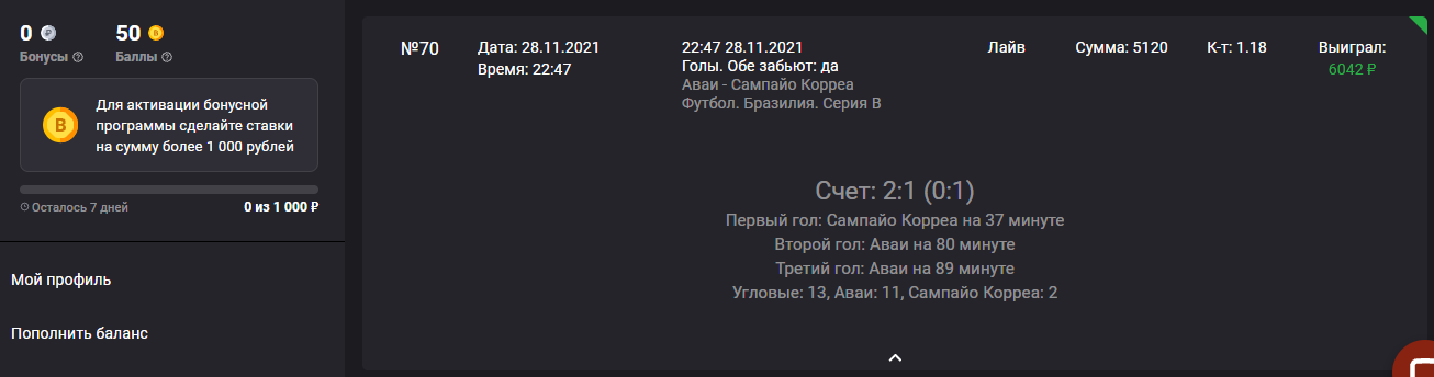 2) Антивалуй без статистических раскладов . Бразилия. Серия Б . 02:00. Крузейро — Наутико , гол от Крузейро.