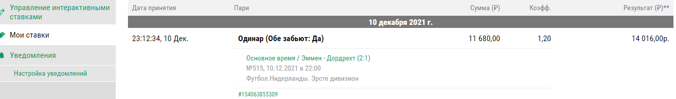 ставил 11 680 р на обе забьют , навар состав + 2 330 р