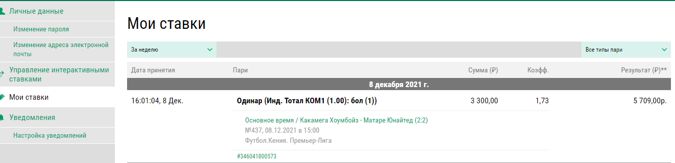 Кения. Какаменга — Матаре , Какаменга инд тотал больше 1 1.73 , 3300 р ( счет 0-1 , перерыв )