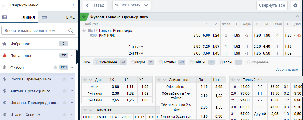 1 плечо. Гонконг . 10:00. Гонконг — Китчи , обе забьют — да 1.74 , по хставка и их клоны , сумма ставки 40 000 р