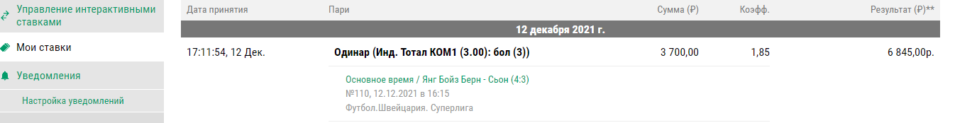 янг бойз — сьон 4-3 , + 2 945 р