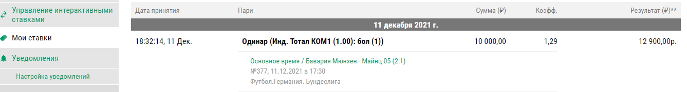 Бавария — майнц 2-1 , + 2 955 р