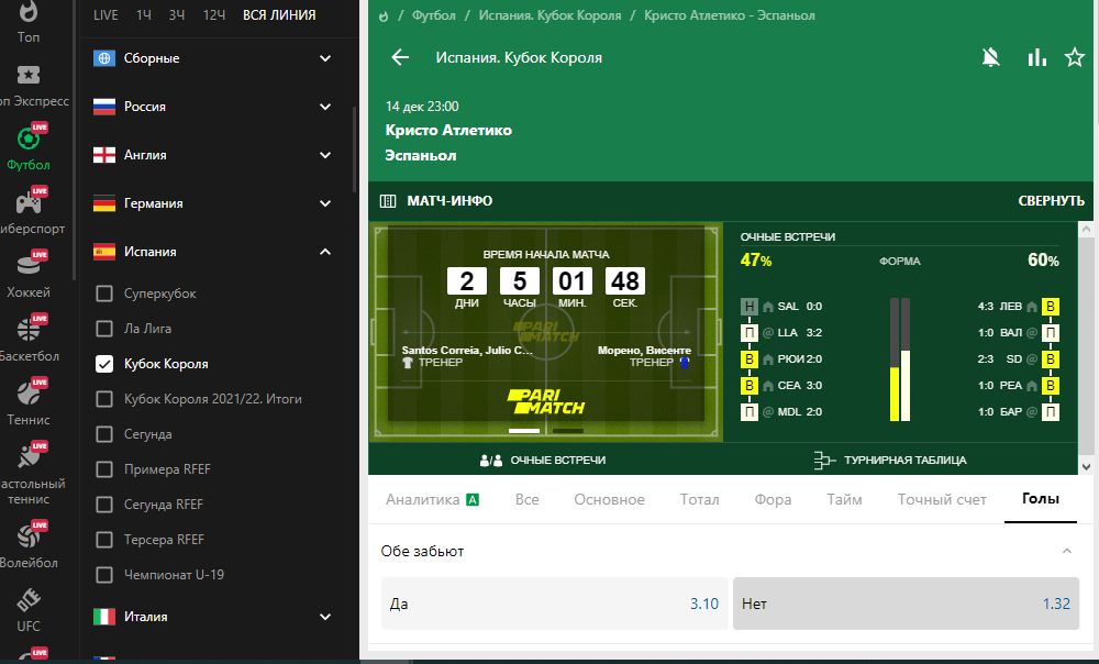 2 плечо . Кубок Испании. 14 декабря матч . 23:00. Кристо — Эспаньол , обе забьют — да 7.3 , по хставка и ее клоны , сумма ставки 12 650 р