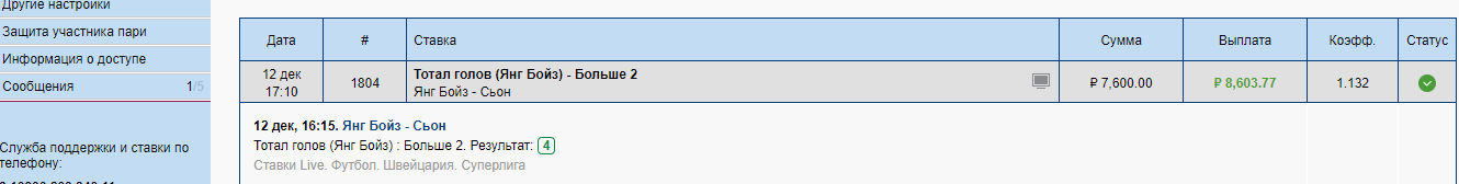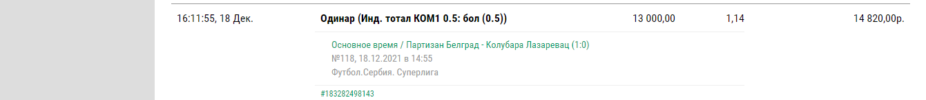 по первой ставке ставил 13 600 р на гол ливерпуля за кеф 1.18 , сверху чистыми снял + 2 450 р