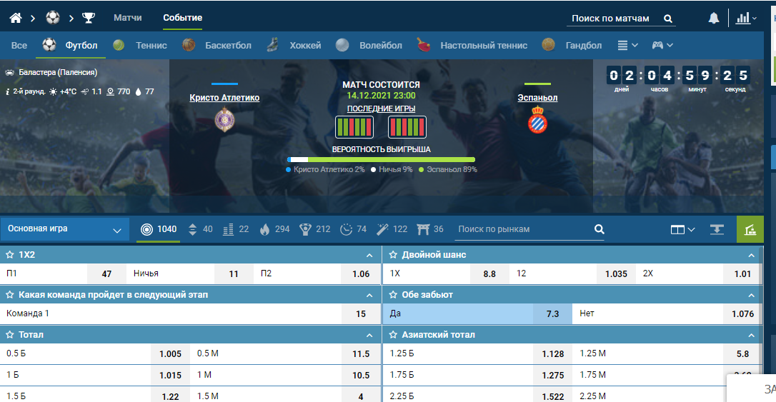 1 плечо .Кубок Испании. 14 декабря матч . 23:00. Кристо — Эспаньол , обе забьют -нет 1.32 , по пари матч и еще каким то , ставка 70 000 р