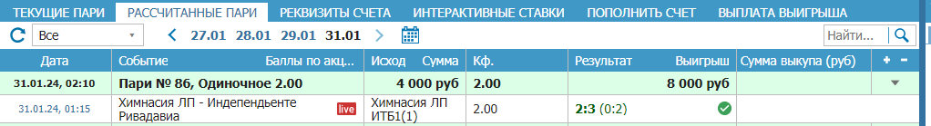 По матчу Гимназия Лп — Ривадина итого + 9500 р