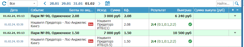 НЕшвилл — лос анджелес 2-4 , итого + 6 600 р