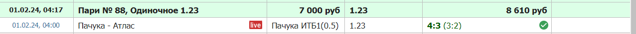 Отчеты по матчу Пачука — атлас , итоговый 4-3 , первый гол Пачука на 17 минуте + ставка на матч Нешвилл — Лос анджелес итоговый 2-4 , все ставки прошли :