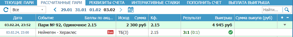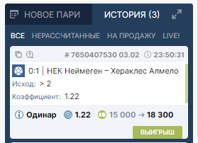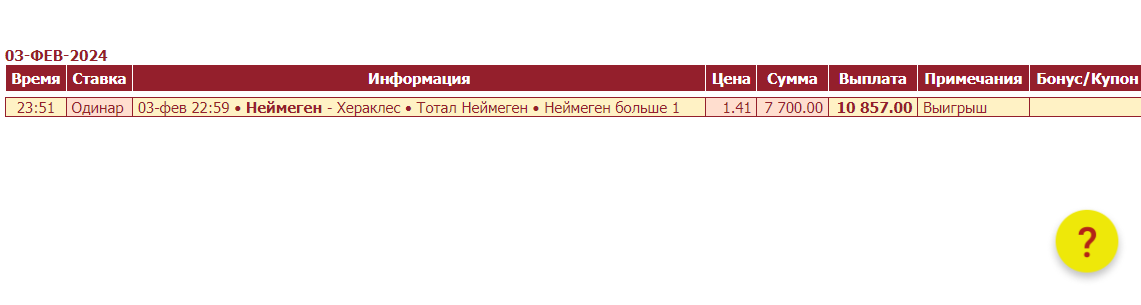Нидерланды. Вышка. Нек — Эркалес , Нек инд тотал больше 1 1.41 , 7700 р