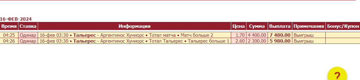 Отчет по матчу Таллерс — Хуниорс 2-1 , абсолютная победа , прошли все ставки :