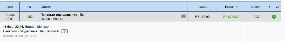 По матчу Ницца — Монако с удаления и пенальти итого + 11 430 р