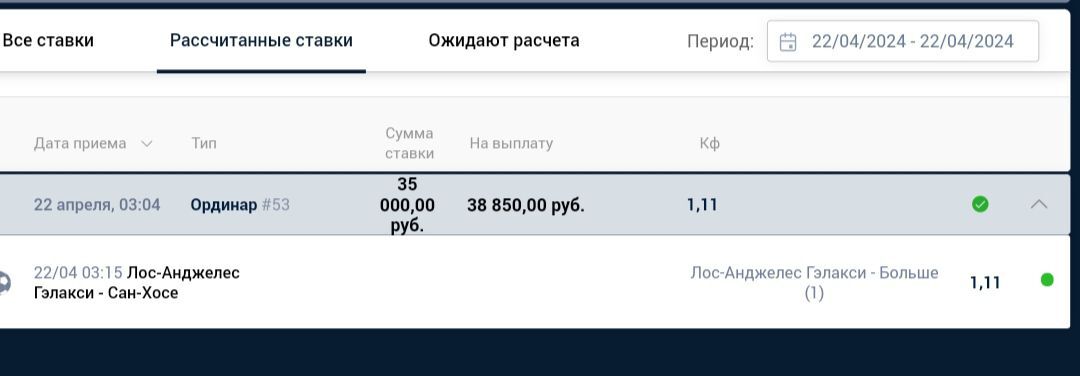 Отчет по матчу гелакси — сан хосе 4-2 ужен ан 60 минуте прошли все ставки + пеналти было , абсолютная победа :