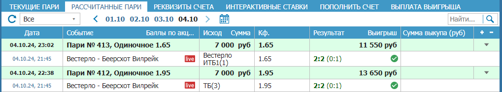 ждем на данный исход в лайв кеф выше 1.7 и заходим на 7700 р , если раньше закатят ничего не ставим