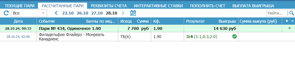 Отчет по матчу Филадельфия — Монреаль , итоговый 3-4 , ставка прошла :