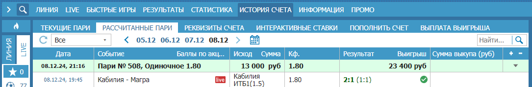 Отчет по матчу Кабили — магра 2-1, гол во втором тайме на 83 минуте , ставка прошла :