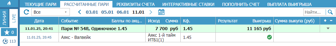 Нидерланды. Вышка. 20:30. Аякс — Валвейк , Аякс инд тотал больше 1 первый тайм , 1.41 , 7700 р