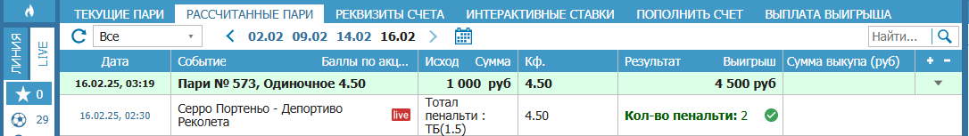 в матче будет больше 1.5 пенальти да , 4.5 , 1000 р