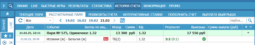 Лига наций. Женщины. Испания — Бельгия , тотал матча больше 2 , 1.32 , 13 300 р
