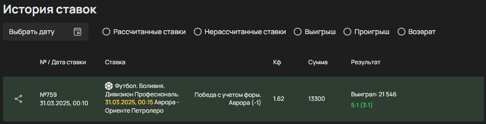 Отчет по матчам Аврора — ориенто 5-1 , ставка прошла , также прошли две ставки по матчу Блуминг — стронгест 3-1 , пенальти тоже плюс :