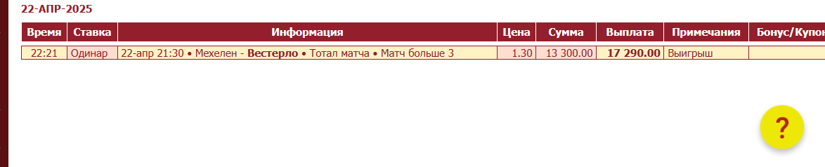 Вышка. Бельгия. Мехелен — вестерлоо , тотал матча больше 3 , 1.3 , 13 300 р