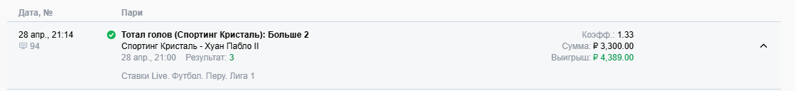 Перу вышка. Спортинг кристалл — хуан пабло 2 , Спортинг кристалл инд тотал больше 2 , 1.35 , 13 300 р