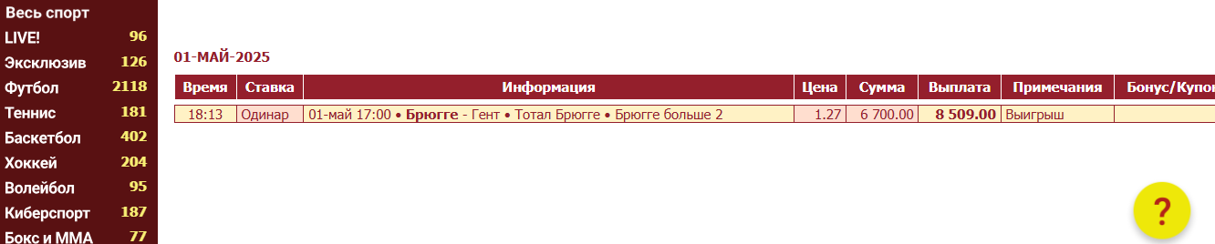 Бельгия. Вышка. Брюгге — гент , Брюгге инд тотал больше 2 , 1.32 , 9900 р , по бк фон