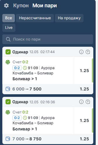 Боливия. Вышка. 02:30. Аурора — Боливар , Боливар инд тотал больше 1 , 1.25 , 13 000 р