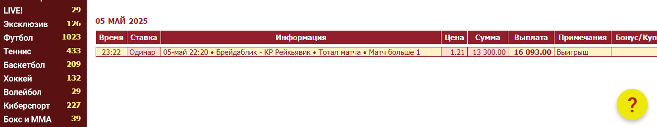 Вышка. Исландия. Брейдаблик — рейкьявик , тотал матча больше 1 , 1.21 , 13 300 р