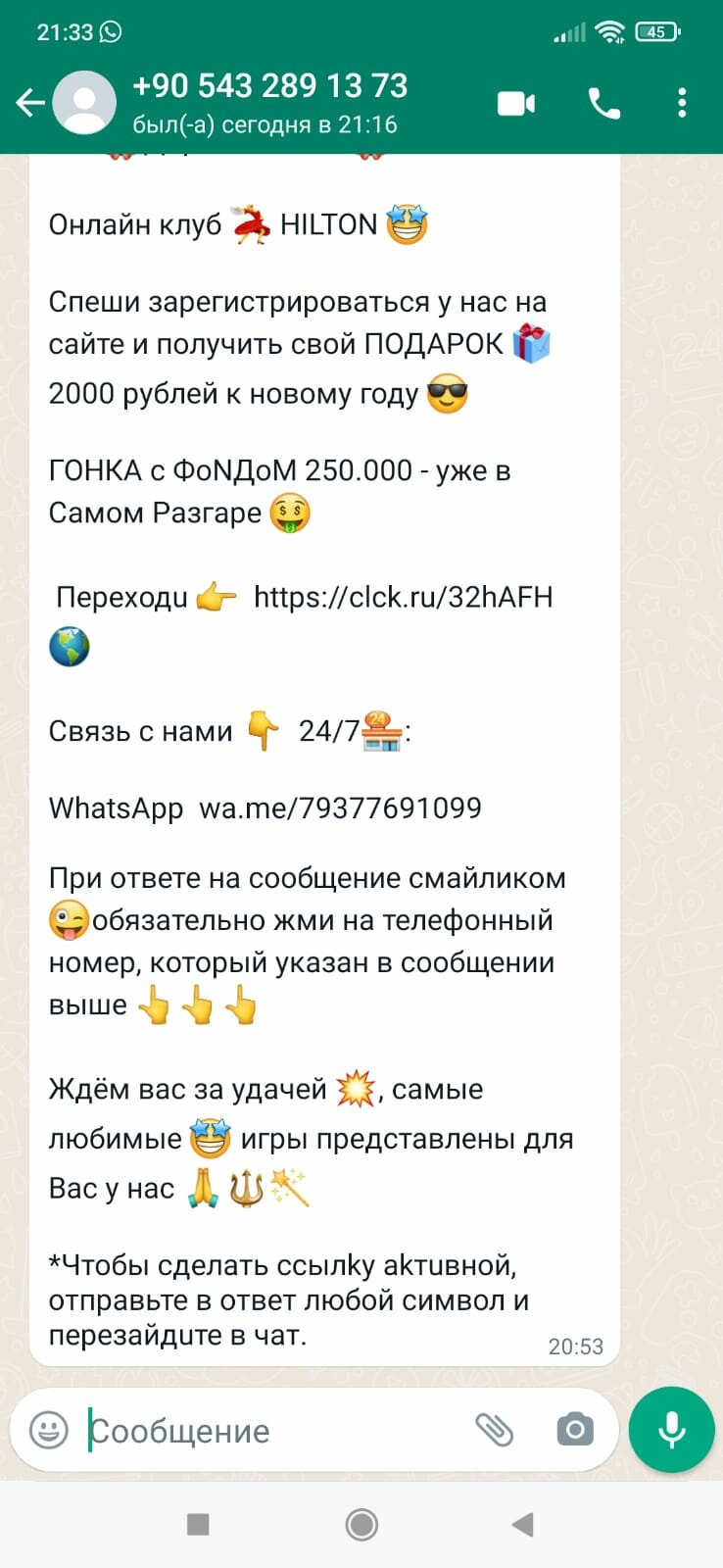А я удалил это сообщение в ватсапе.переходил по ссылке от них но там шляпа какая то и удалил…видимо зря