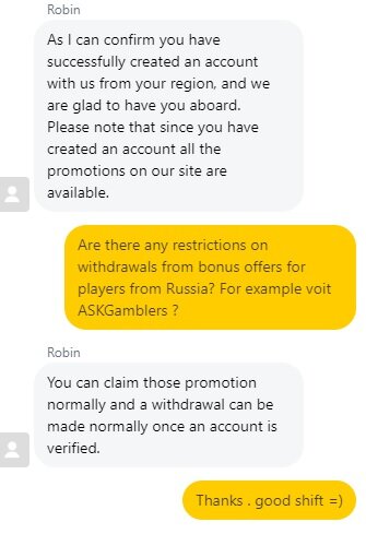 Есть ли ограничения на вывод средств из бонусных предложений для игроков из России , Например voit ASKGamblers ?