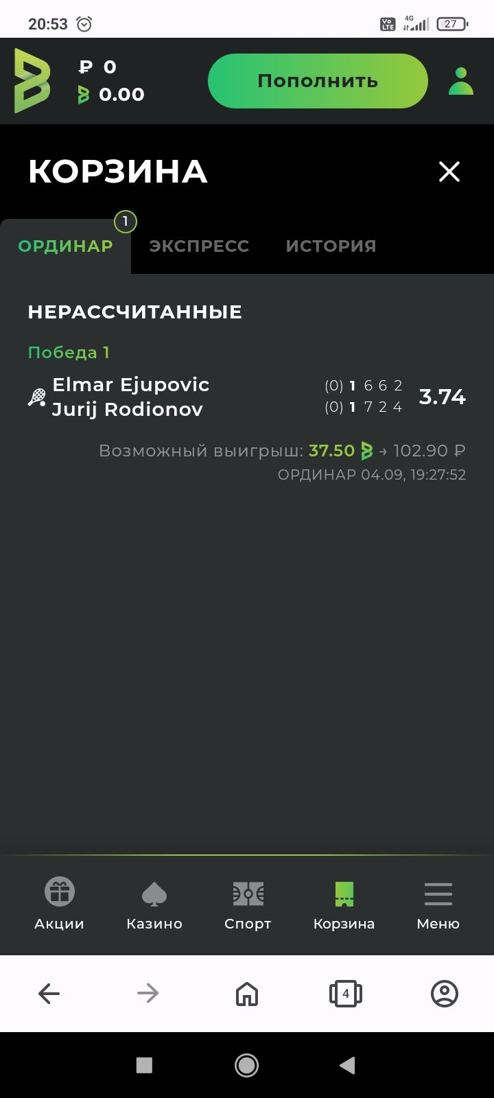 Я ставил бонусные на спорт, только не помню,откуда появились эти бонусы,бухой был) сегодня остатки воткнул на теннис,похоже мимо…